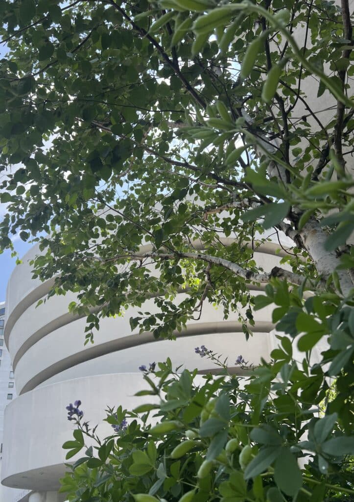 Layered planting frames views of the Solomon R. Guggenheim Museum along Fifth Avenue, introducing softness and seasonal variation while maintaining a clear relationship to its iconic form.