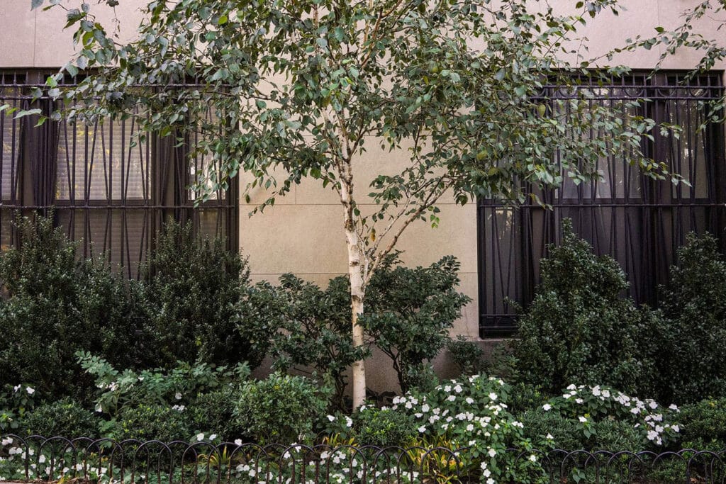Commissioned for a co-op building on the Upper East Side, the project establishes a semi-evergreen, predominantly native planting palette within a highly visible urban context.